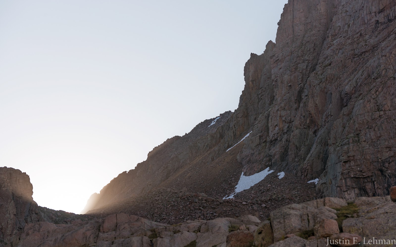 The moment when the sun just crests the high saddle across from Twin Lakes.