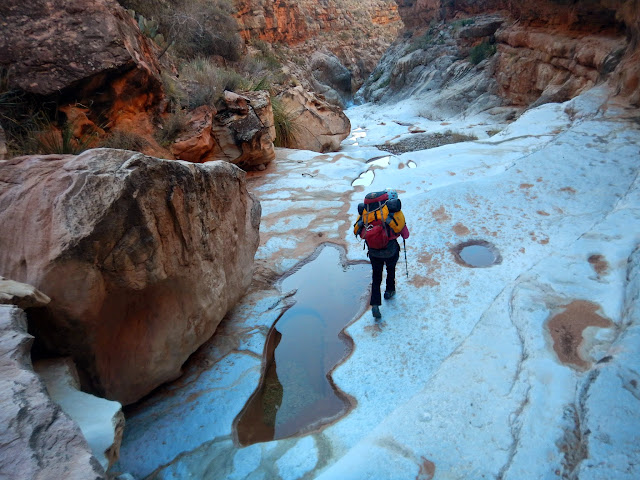 So when it landed that just two of us were going to be able to go down Cove Canyon in Grand Canyon, we hesitated and considered other options. I am proud to still be toughing it out on the adventure circuit and I think Jenny is too....but this canyon required a 60m rope and then the pull. It required full camping gear for the multi day affair that it is. We had the option to forgo the pack rafting and all the gear it entails, but, but, but it is about the most fun part of the adventure. Edgy? Yes! Fun? A ton! So with apprehension and REALLY big packs, we commit to the project, with the only concession being an extra day on the permit. May all my concessions be as good, as having one more day, in the big ditch.