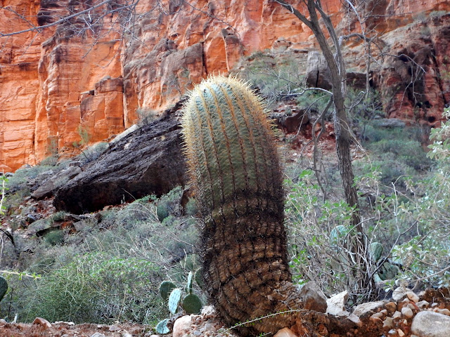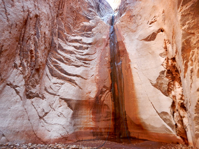 It is an 8.5 mile hike to the canyon head. Well less than half that as the crow flies. As we passed the side canyons of Cove via convoluted passage, the heat of the day took its toll. My pack may have been a dozen pounds heavier than Jenny's, but she was carrying 40+% or so of her body weight. Waaay more than me. If I tried the same, I would crash and burn.