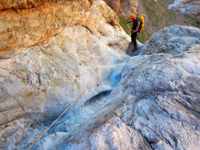 After a long and at times challenging scramble down, we found a non tech way into Lower Hades and did the last 9 raps or so