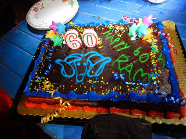 Later that evening, around the fire, a surprise belated birthday party was sprung, to total surprise.