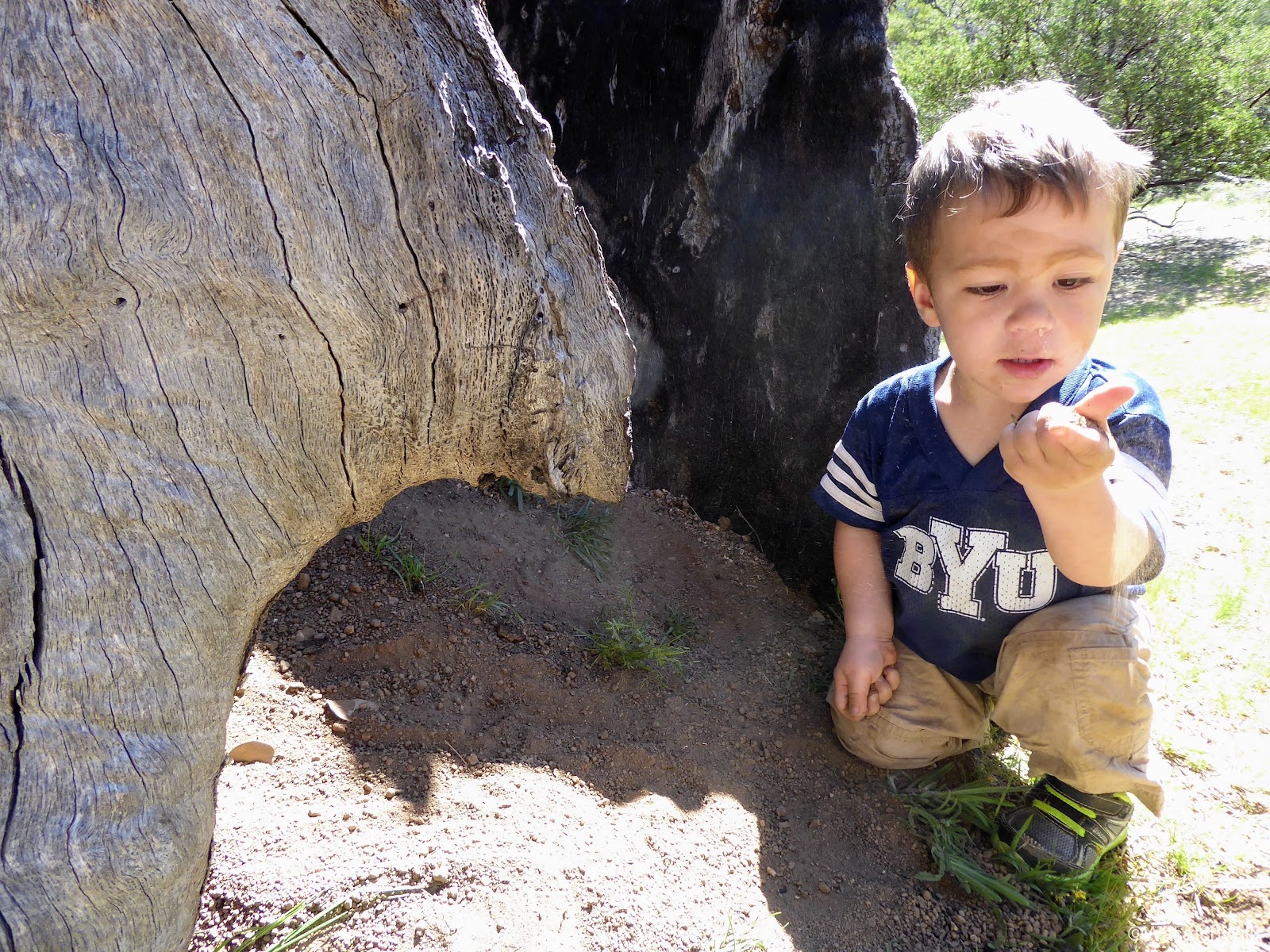 Within our campsite was an odd looking formation. It was actually an old rotted out tree trunk. The kids and I had fun thinking up all the different animals it looked like. Bird, dinosaur, and more specifically, a raptor, were all mentioned. The kids also got to play around a bit while I worked on getting camp cleaned up.