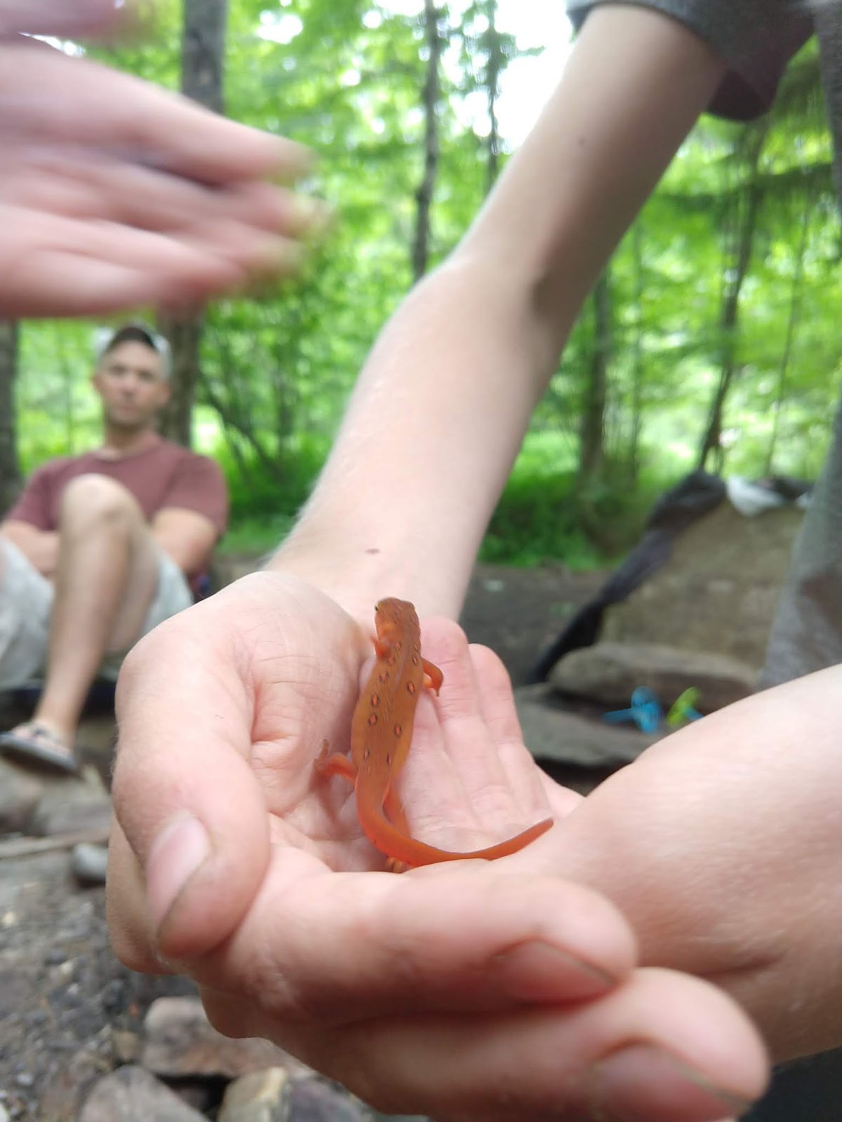While scrounging for firewood, the kids found a salamander, they all checked it out/passed it around and then complained when I said to let it go.
