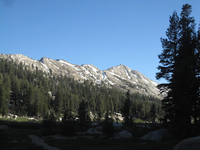 Day One: Off to a late start after getting our permit at Pinecrest, where we were warned about lots of snow and high water levels--which we never found. But the miles clicked right along, up over one ridge, down into the valley, back up over the next ridge,,,and on and on. When they wrote "The Bear Went Over the Mountain" they were in the Emigrant Wilderness.