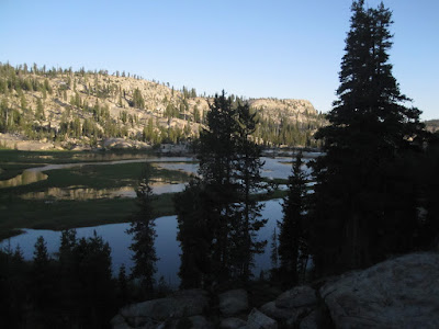 Day Four: Which is too bad. Because after a slightly less buggy night at Huckleberry Lake, we had one of the greatest hikes of our life the next day, climbing up out of Cherry Canyon. The trail worked up a series of granite ledges, and each one offered something different: a lily pond, a view of the lake, a lagoon of ferns, some towering old growth trees, another view of the lake, with the peaks of Yosemite behind, a tiny tarn set in a forest of trees, more vistas...it was heaven.
