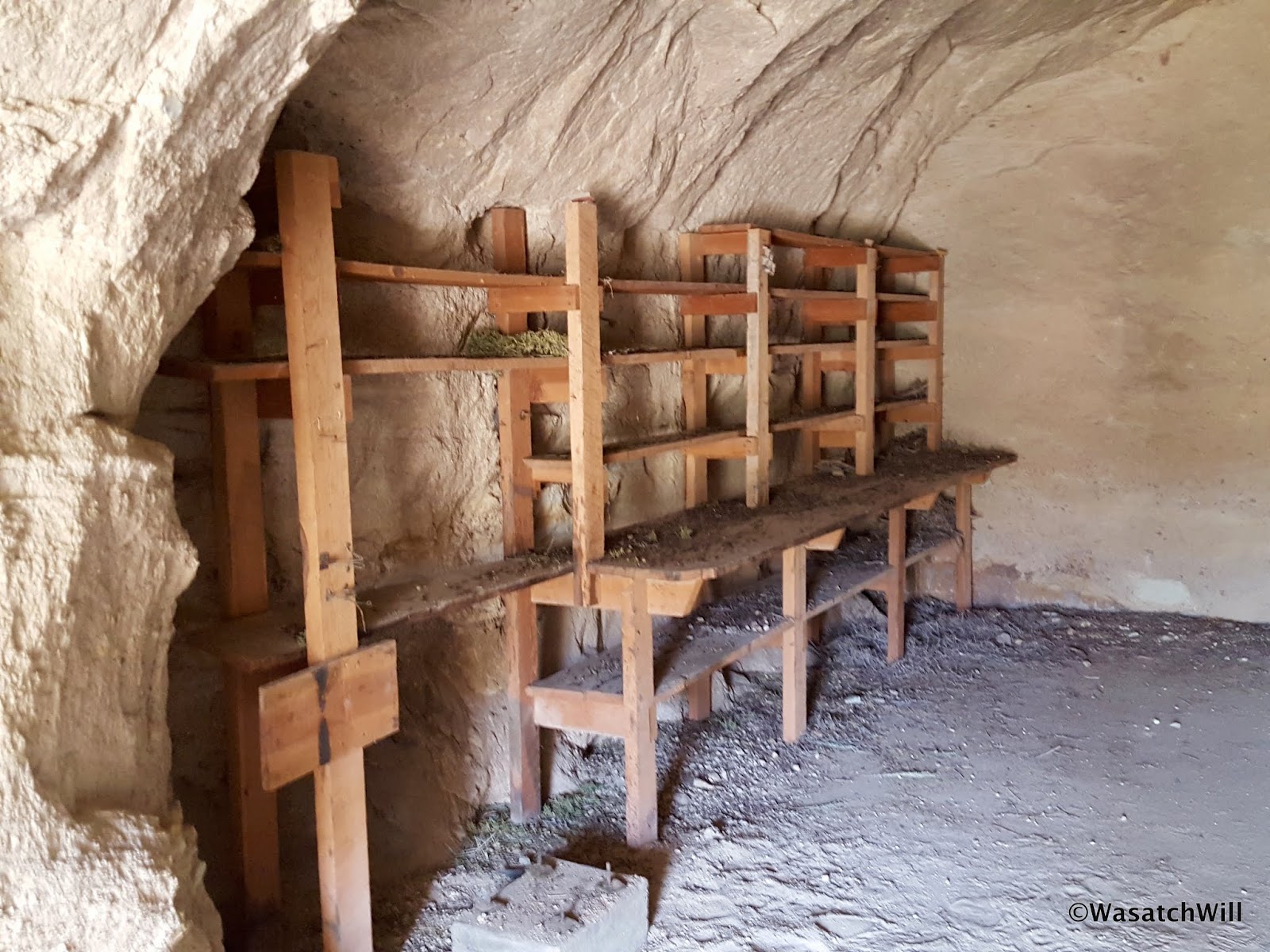 Next stop was Batty Pass Caves where some old remnants of two German brothers in the 1950's who had carved out some caves from the side of a rock face remained. Other remnants were more contemporary, mainly two camp chairs left in one of the caves by someone and a notebook on one of the tables or work benches and few other odds and ends left behind by more recent visitors.