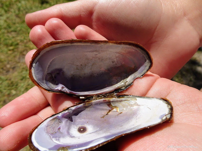 While there, the kids enjoyed a stroll out into the creek and found some interesting mussel shells. I'm not sure if these were native or not, but after finding some info on native freshwater mussels up in neighboring Montana's creeks and rivers, I'm guessing these are among those native species.