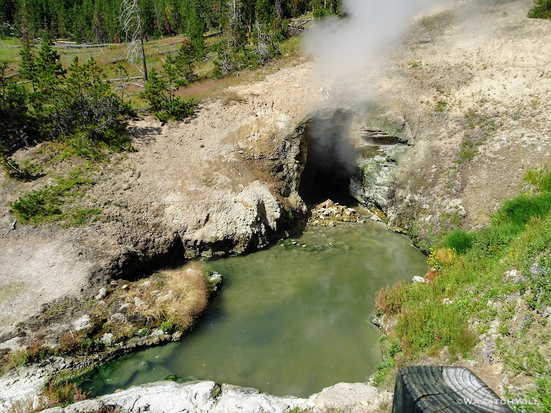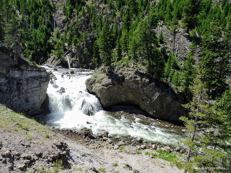 From there, it was on down Norris Canyon Road to top off the lower half of the Grand Loop. After the junction at Norris I pulled over for a quick look down at Chocolate Pots along the Gibbons River.