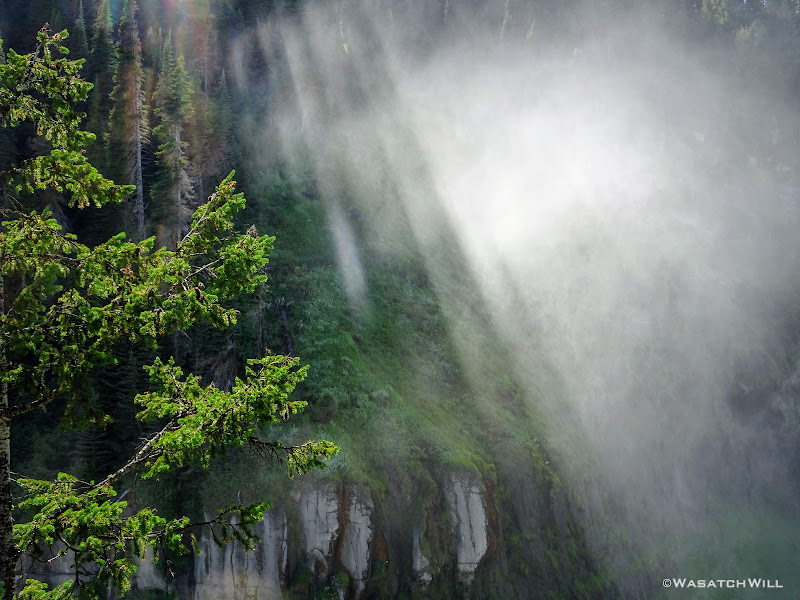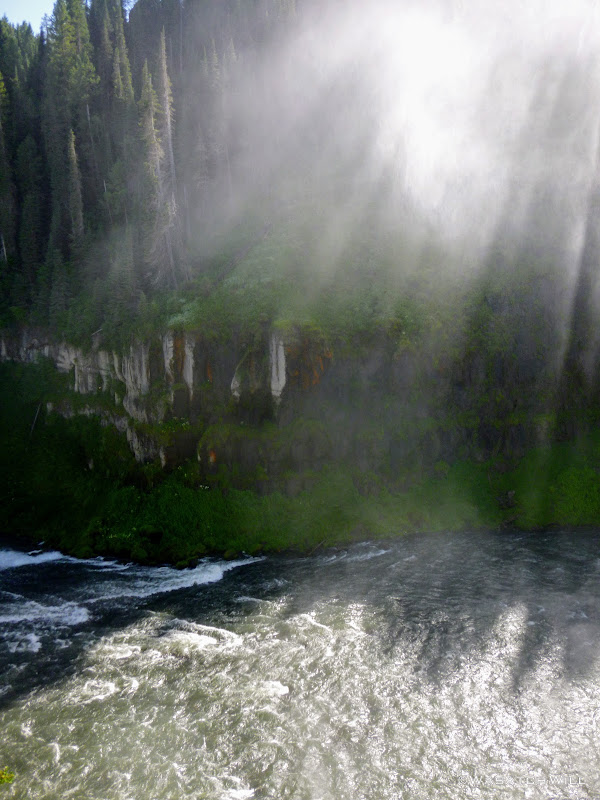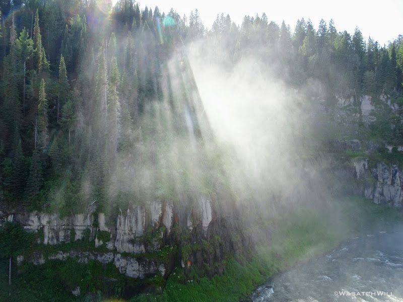 On our way up into the park, as we drove through Idaho, we took a little detour to check out Mesa Falls. Basically there are two great times to visit: early in the morning just after sunrise when the eastern sun can create a rainbow across the mist, and in the afternoon, when the sun now shining in from the west can create some really cool mystical rays through the mist. We discovered this for ourselves with out own afternoon visit.