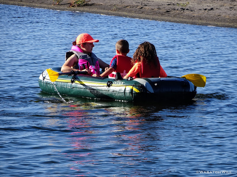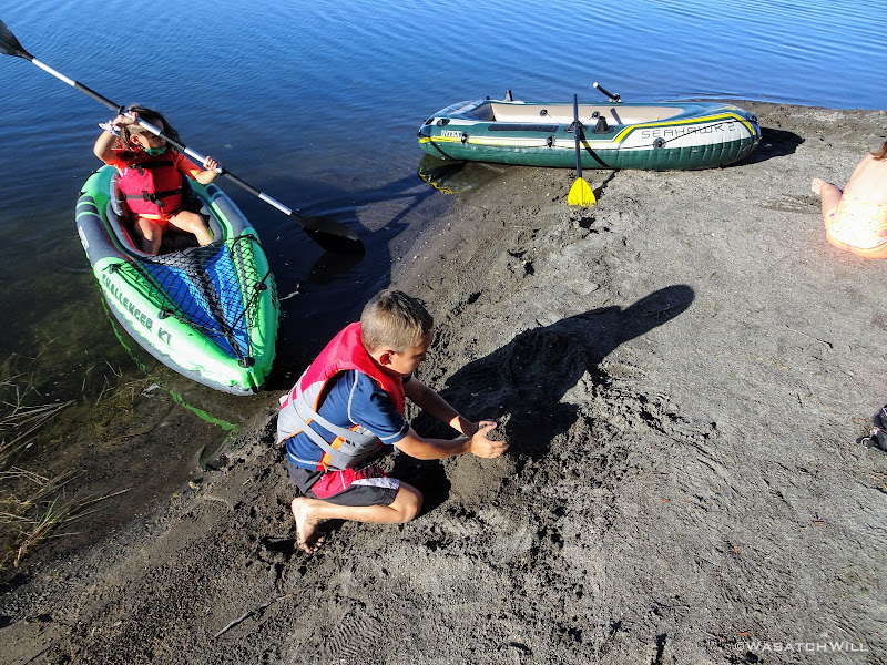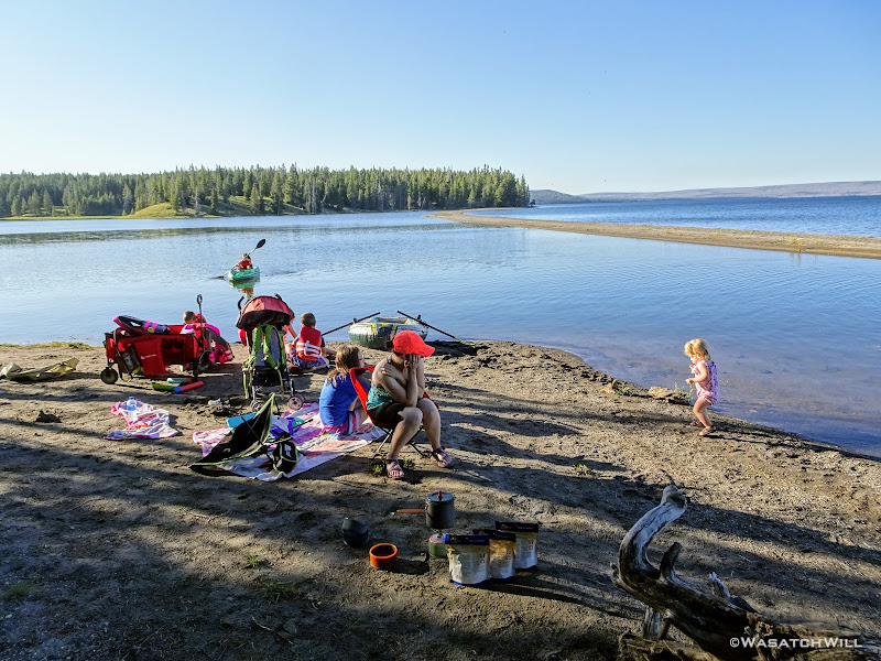 Back at camp, we opted to spend the rest of the afternoon out on the shore of Yellowstone Lake. On my last visit with our scouts, we never had issues with leeches, but they were very much out and about when we arrived for this beach visit. Between them and all the bugs flying about, it was not the most enjoyable experience, but we made the effort to get there so we were not easily dissuaded. The kids took turns riding and paddling our inflatable boats while others would stay on shore and play in the sand.
