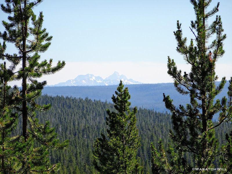 At the Shoshone Lake Overlook, the lake could be barely made out in the distant forest. Instead, the view of the Grand Tetons a little further above on the horizon was much more appealing to me.