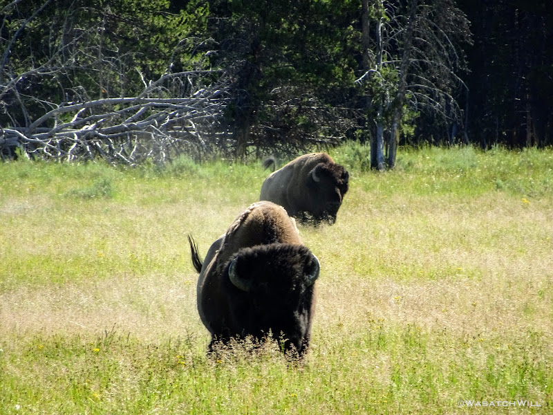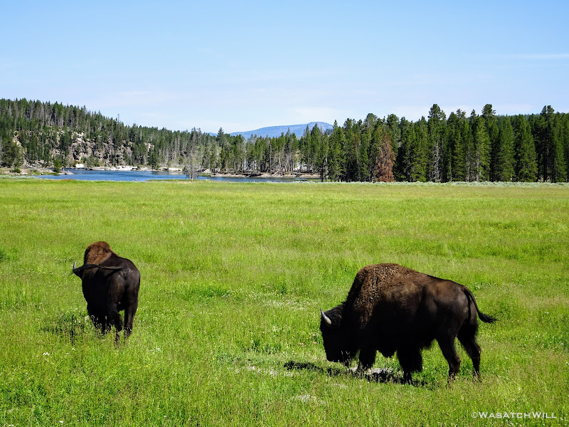 We began our final full day in the park with a drive up along the lake and around the lower half of the Grand Loop. As expected, as we approached the area of Mud Volcano and Hayden Valley, some of the Park's bison could be seen out roaming around alongside the road.