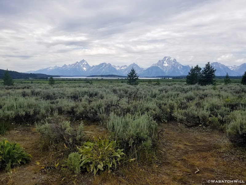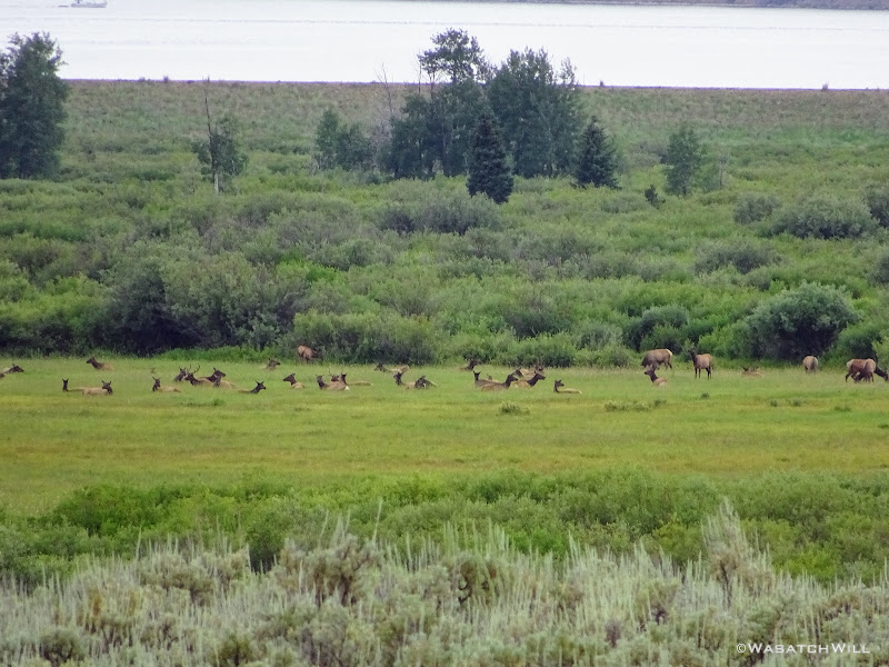 As we made our way around Jackson Lake, we pulled over for an overview of Willow Flats and caught sight of a massive elk herd lazing about out in the distance.