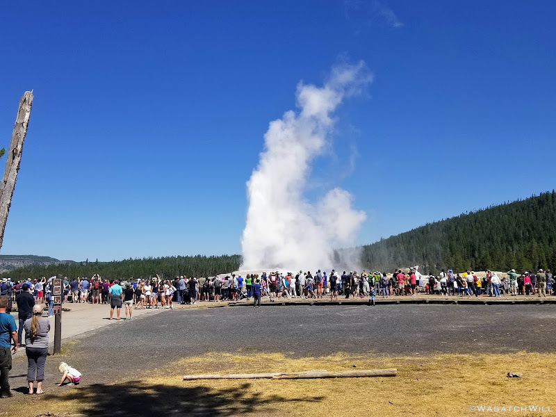 On our way out we checked out the lodge a bit before coming back out just in time to see Old Faithful go off again. This time, from a little farther back.