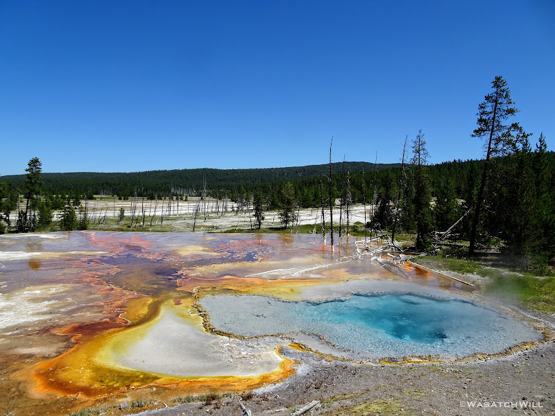 Much of the next morning was spent taking down camp and getting our car packed up for the long haul back home. We'd take time to do a bit more sight-seeing on the way home though. First, it was a quick little spur trip out to neighboring West Thumb Geyser Basin near our campground.