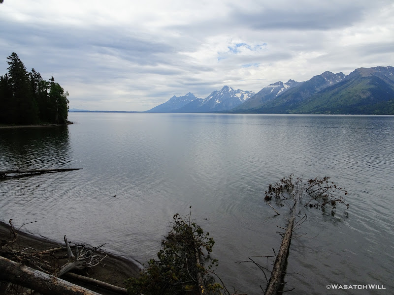From there, I had greatly anticipated being able to pull into a spot in the String Lake or Jenny Lake area for a scenic lunch break. It was almost a shock to find that these areas weren't like so much of Yellowstone where there was constant turnover in the traffic and parking areas due to the quicker nature of seeing so many of those roadside features in Yellowstone. Here in the Tetons, as least for these lakes, people were there to spend much of the day, paddle-boarding, canoeing, kayaking, hiking, and the list goes on. The parking lots around these lakes were all full with no signs of anyone coming out to leave anytime soon. We circled the lot at String Lake a number of times all for not.