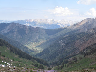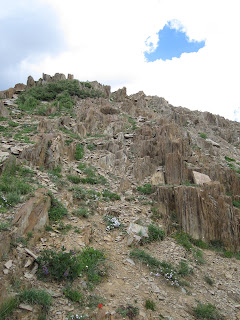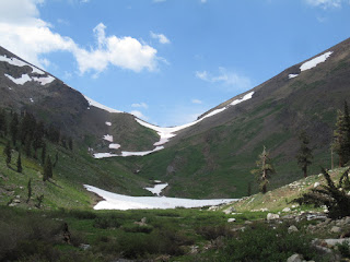 Day ONE: the trail starts right out of the West end of the campground, so I took a quick trip to park the car across the road from the campground entrance (this was at the suggestion of the ranger, to avoid marmot damage. The rodents had already disabled four cars in the main trailhead parking lot this season.) And we were off. The only real climb of the day was the first stretch of the trail, where we gained about 700 feet to get us up to contour around Hengst Peak.