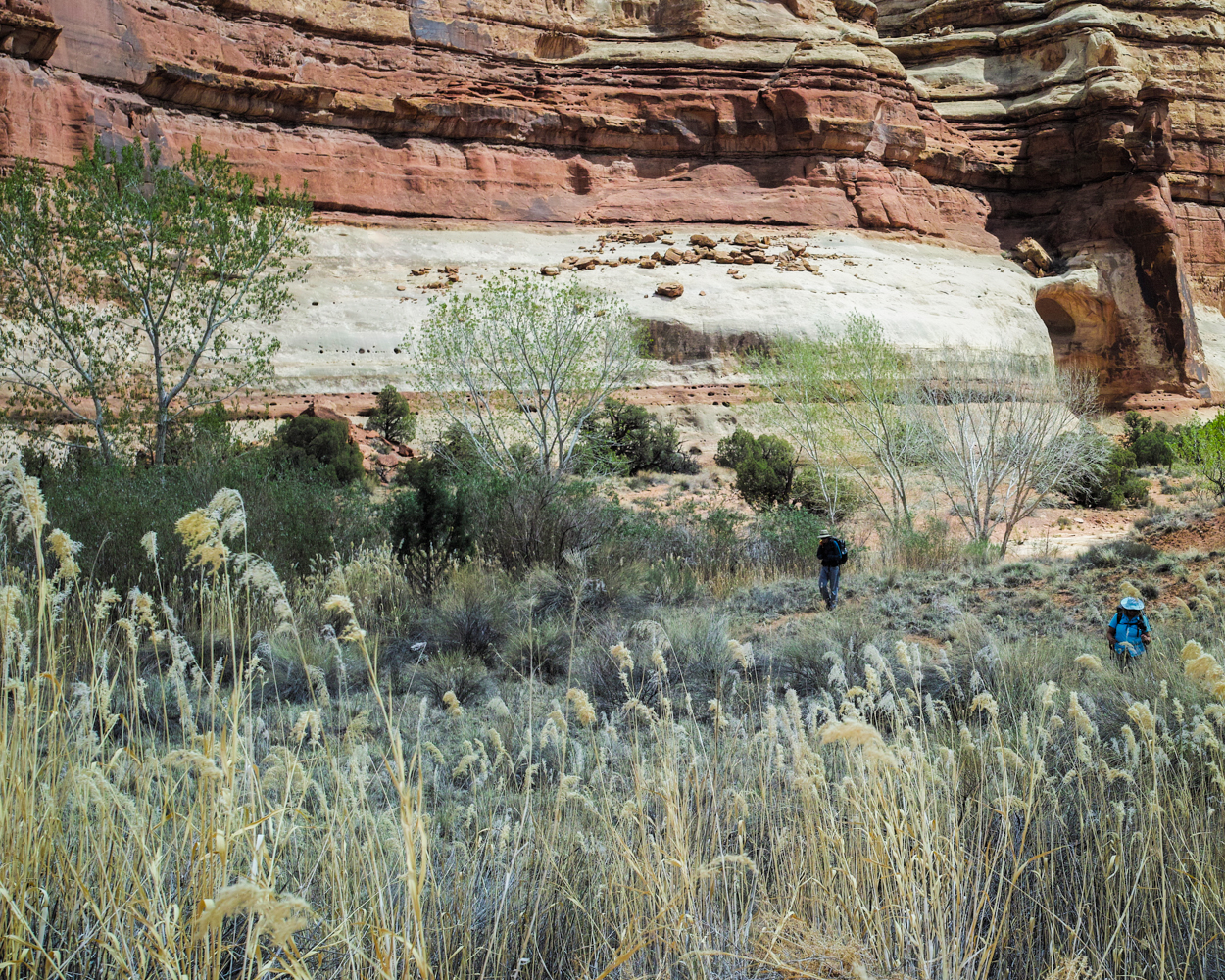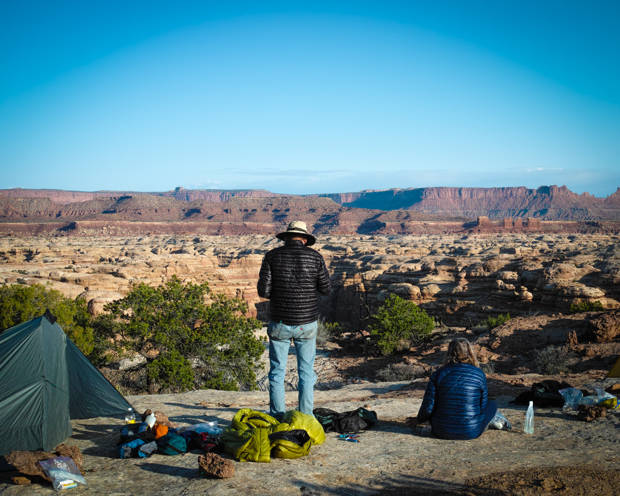 We spend the latter half of the first day getting gear ready for the return shuttle and sorting the hiking gear. The next morning we shove off across Spanish Bottom, heading for the Dollhouse.