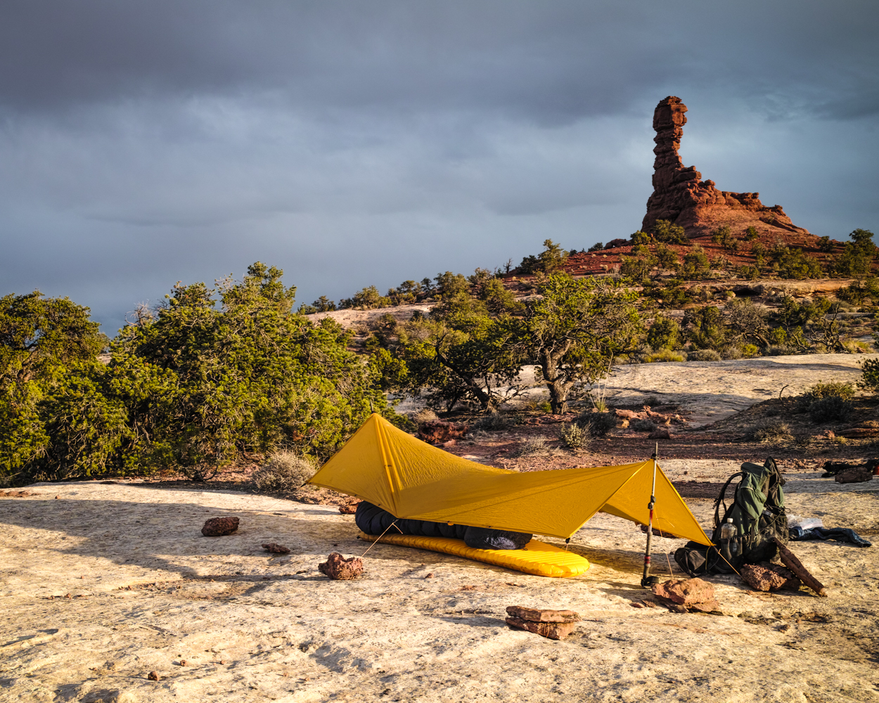 We made our way to Chimney Rock and quickly bedded down on the sandstone to avoid the ensuing wind and rain.