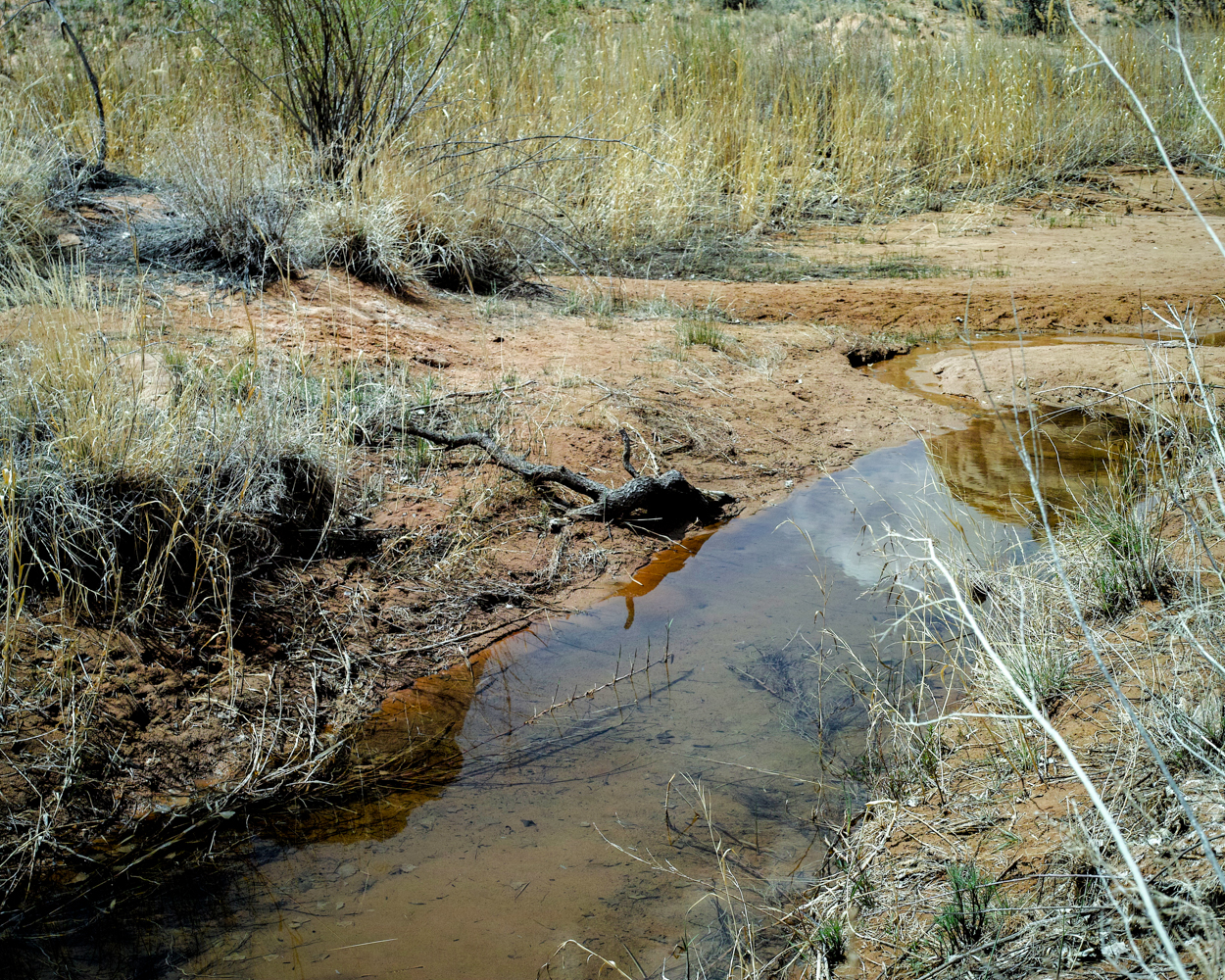 Reaching the canyon bottom we trudged on in deep sand. At the mouth of Pictograph fork we found a large spring and topped off our water supply.