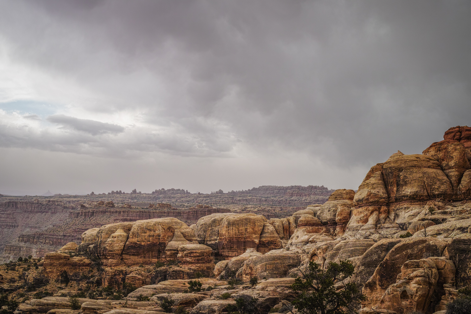 When we reached the trail down to Spanish Bottom we were afforded dramatic views cross canyon to the Needles District of Canyonlands. From this view it appeared that the storm was headed our way.