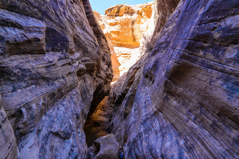 Once it narrows up there was a pothole we couldn't make it past so we had to backtrack and climb out of the canyon.