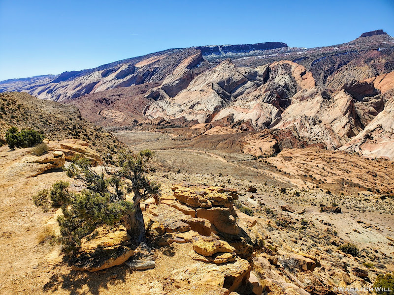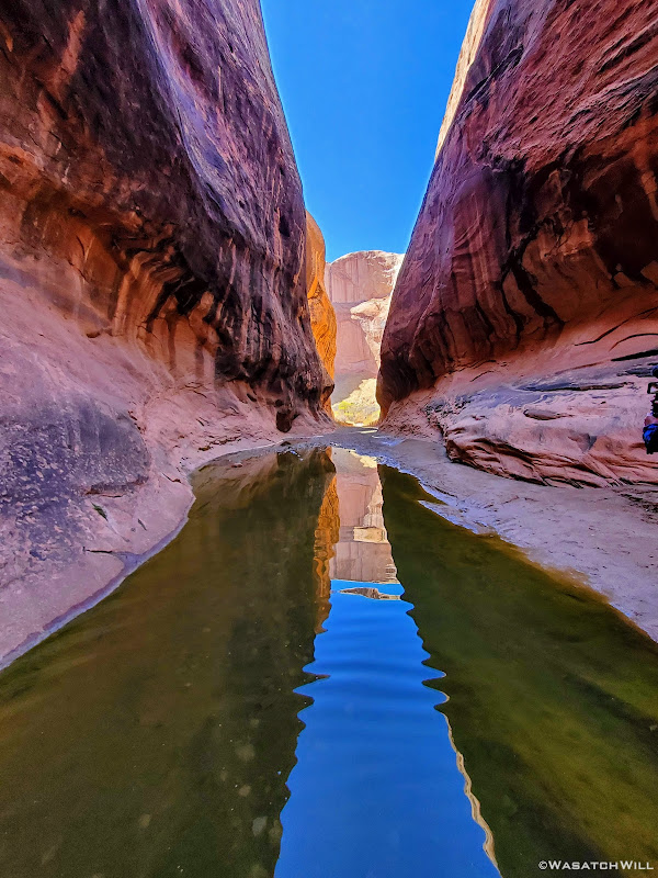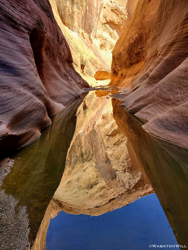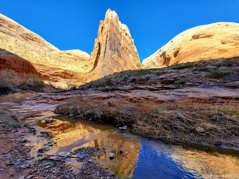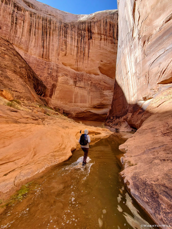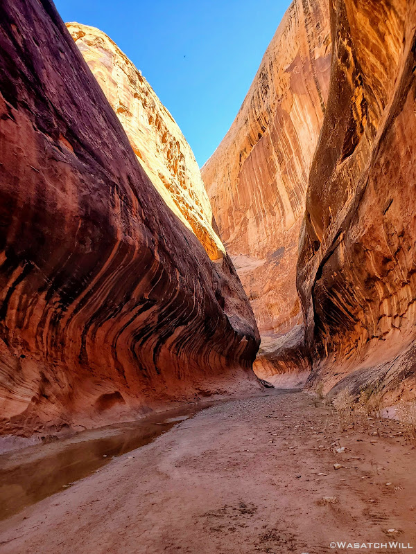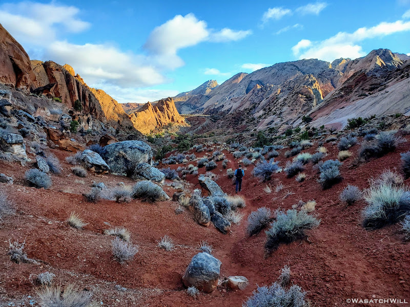 When my friend Devin contacted me about wanting to do a weekend desert trip, he had been keen to do an unknown route he had strung together down on Cedar Mesa, but for various reasons, that was put on the back shelf. We then started considering a loop in Capitol Reef through Lower Muley Twist, but we were not sure how icy a crux spot along that route might be, if there was any left at all, especially with recent wet weather and below freezing temps at night. There was another route I had strung together to explore an unfamiliar canyon in the northern part of Capitol Reef but again, that too was shelved for another idea I had pitched to him: Halls Creek Narrows. Since Devin had yet to experience that himself, I was able to convince him that this would be a perfect opportunity for him to check that one off.
