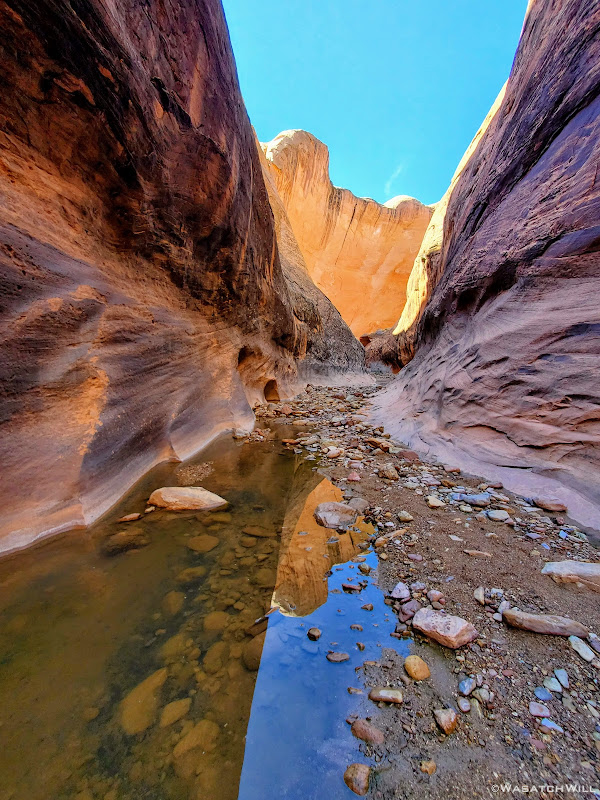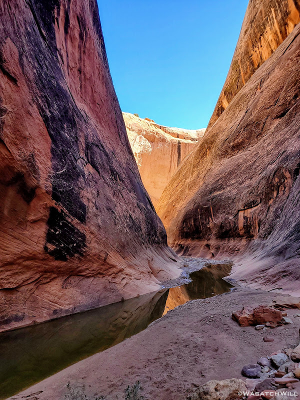 The final morning would be spent hiking back to the car the way we had come down. Before packing up though, I wandered up a nearby side canyon to see how far I could get. It wasn't very far at before I was presented with a deep and impassable pool.