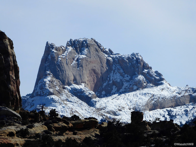 There was an unnamed landmark out to the south that I was particularly impressed with and kept turn back to view. With the snow, it reminded me of pictures I'd seen of Chile's Torres Del Paine, the world famous iconic pinnacles in South America's Patagonia region.