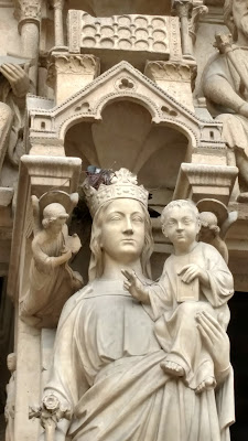 And wildlife as well--like this pigeon nesting in the Virgin Mary's crown on Notre Dame