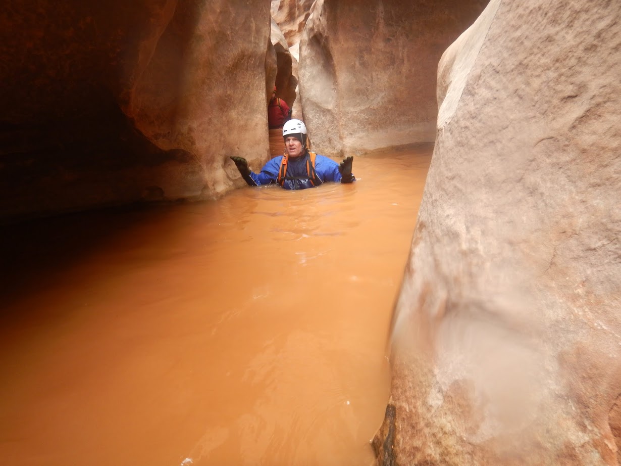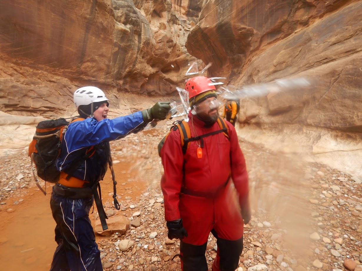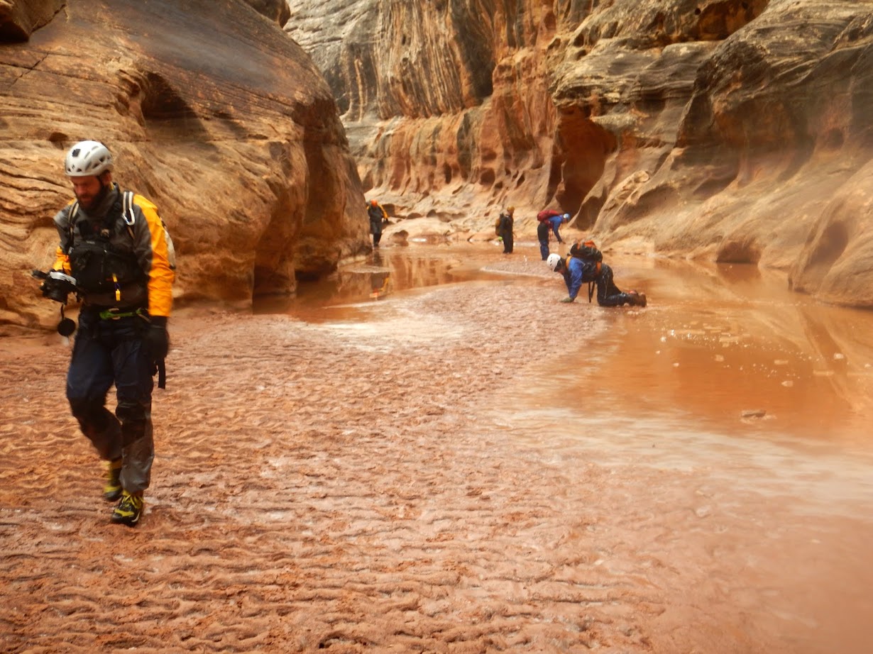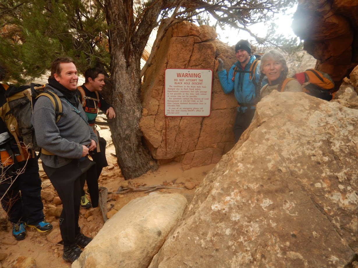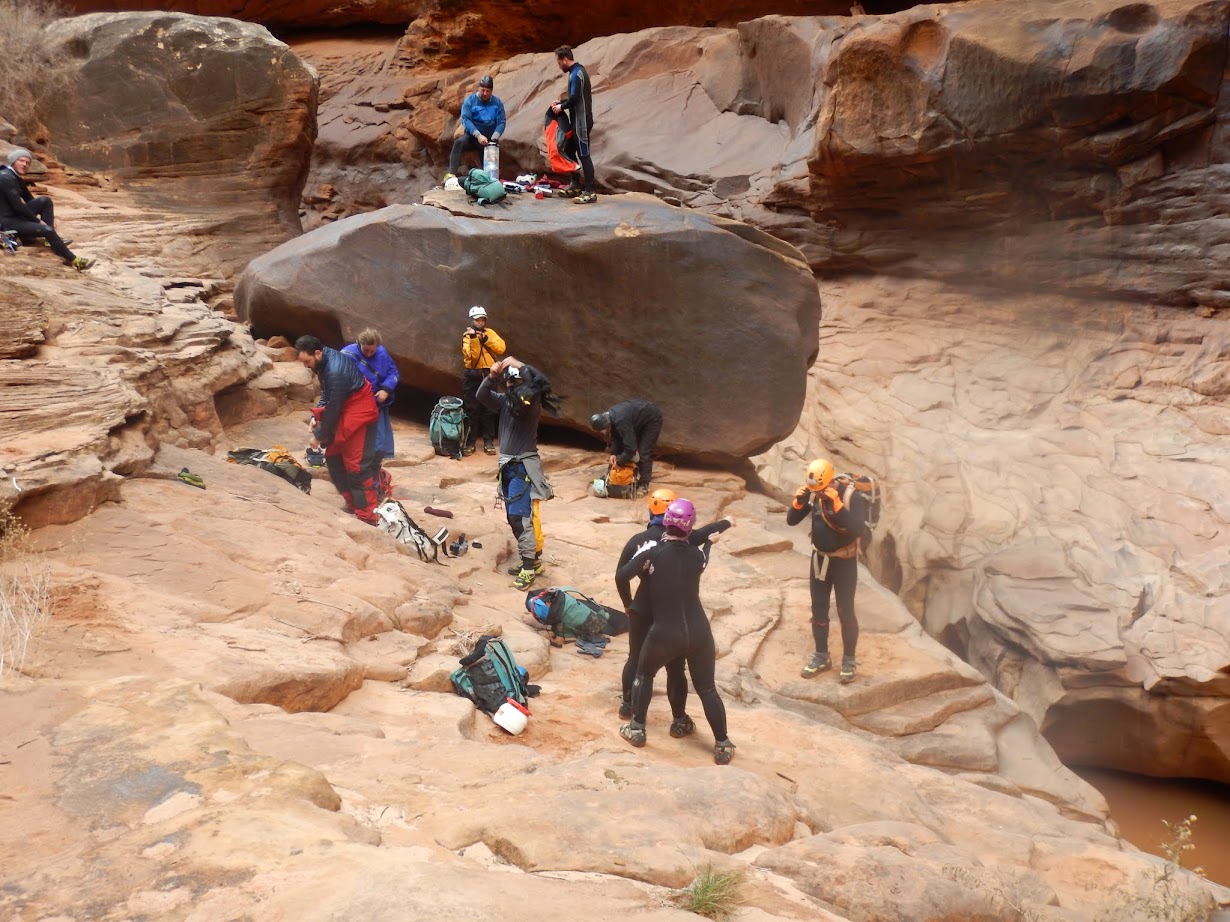Happy New Year....January One 2017, was the 14th installment of the New Years Black Hole descent, in the 15 years of FreezeFest. Over the years, it has been in the 50 degree range a pair times, the 40's half a dozen times, below freezing about four times, including 6 degrees one morning, warming to maybe 20. There has been log jams 3 times, very snowy twice, flowing 3cfs once and icy to some degree almost always, sometimes creating great challenge. We treated one person for mild hypothermia and to my knowledge have not had any other reported injury of any kind. Our numbers were 6, 7, 4, 8, 12, 16 the first 6 years and has been in the 20's every year since, ranging from 22-28 brave souls. We had 24 folks this year, in party cloudy skies, with temps in the low 40's and less ice than normal. A bit scoured this year too, so a few more swims than normal.