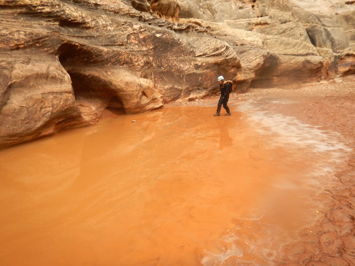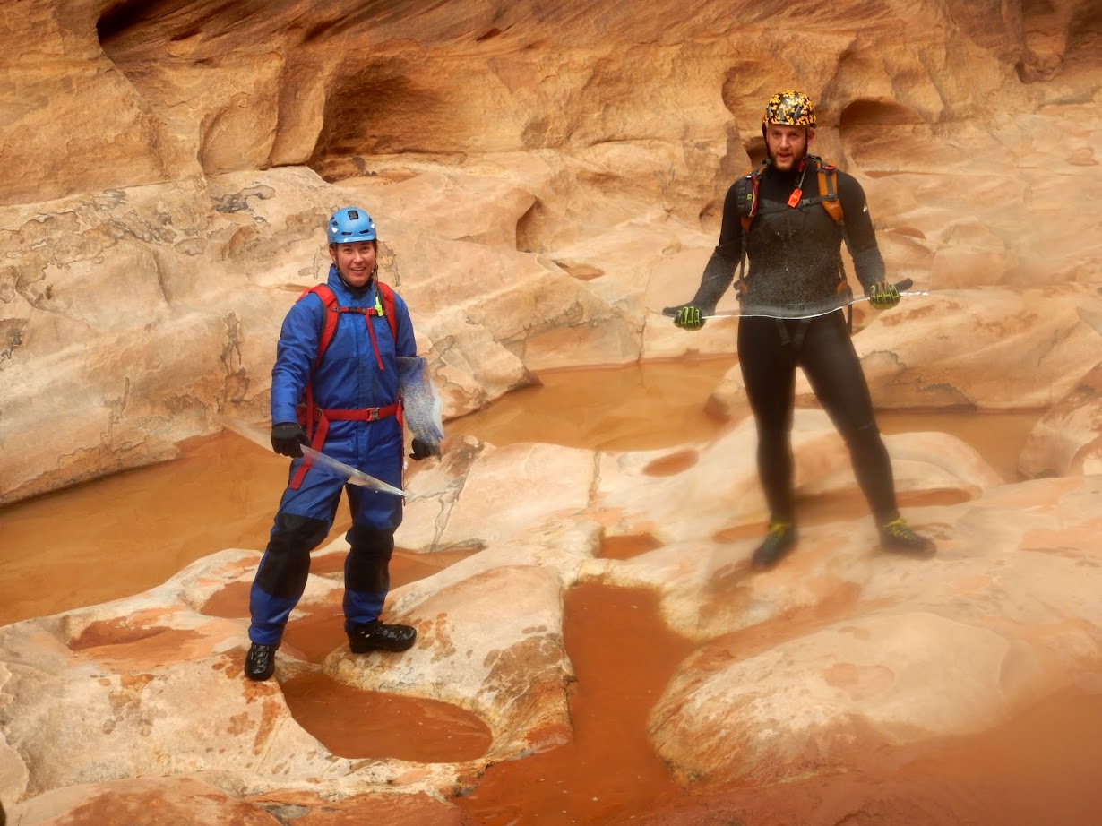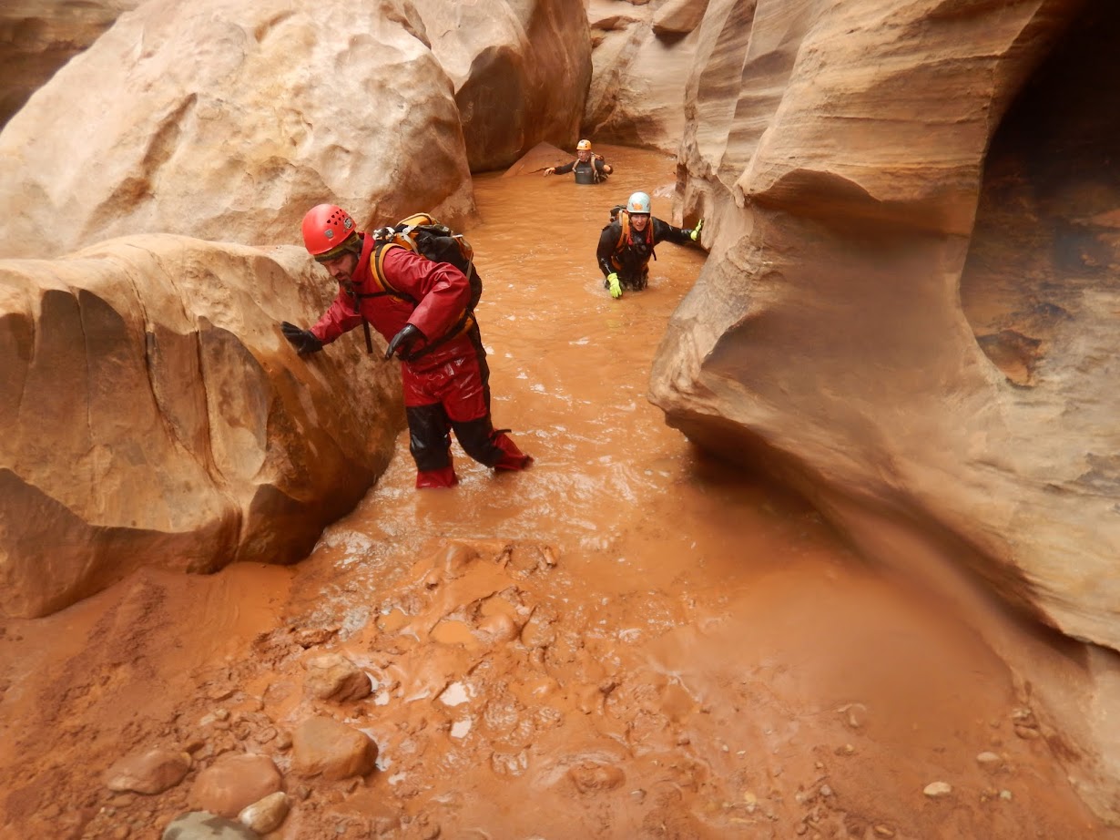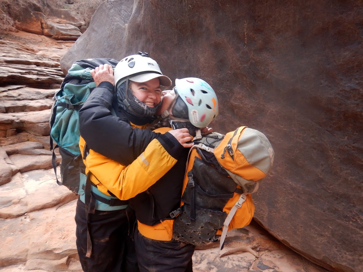Happy New Year....January One 2017, was the 14th installment of the New Years Black Hole descent, in the 15 years of FreezeFest. Over the years, it has been in the 50 degree range a pair times, the 40's half a dozen times, below freezing about four times, including 6 degrees one morning, warming to maybe 20. There has been log jams 3 times, very snowy twice, flowing 3cfs once and icy to some degree almost always, sometimes creating great challenge. We treated one person for mild hypothermia and to my knowledge have not had any other reported injury of any kind. Our numbers were 6, 7, 4, 8, 12, 16 the first 6 years and has been in the 20's every year since, ranging from 22-28 brave souls. We had 24 folks this year, in party cloudy skies, with temps in the low 40's and less ice than normal. A bit scoured this year too, so a few more swims than normal.