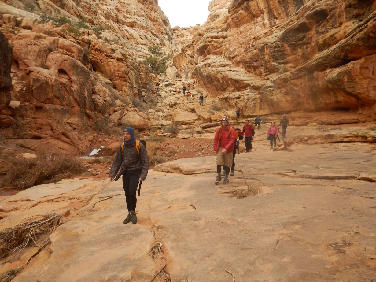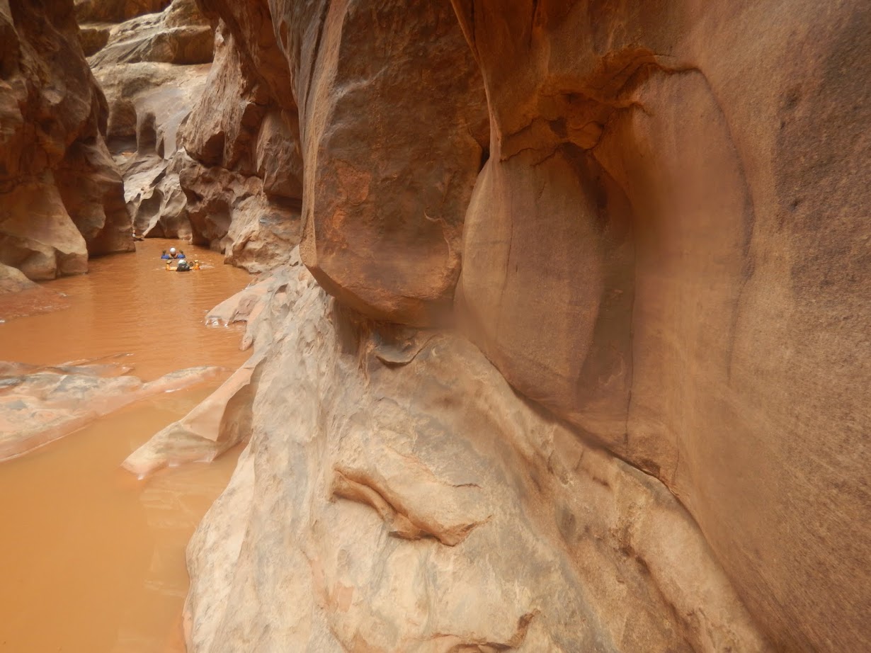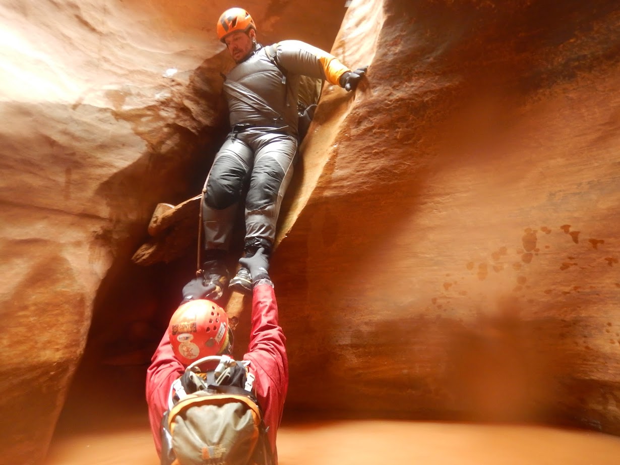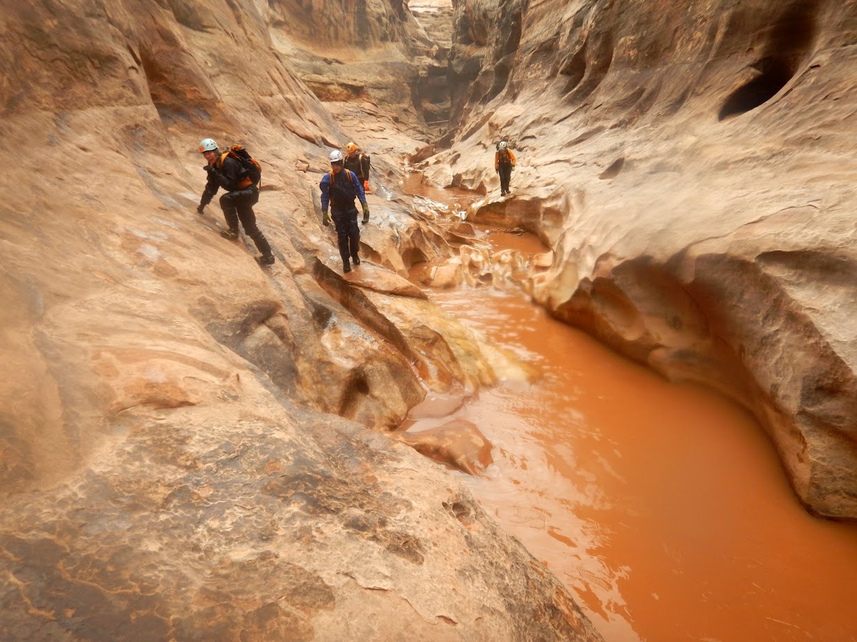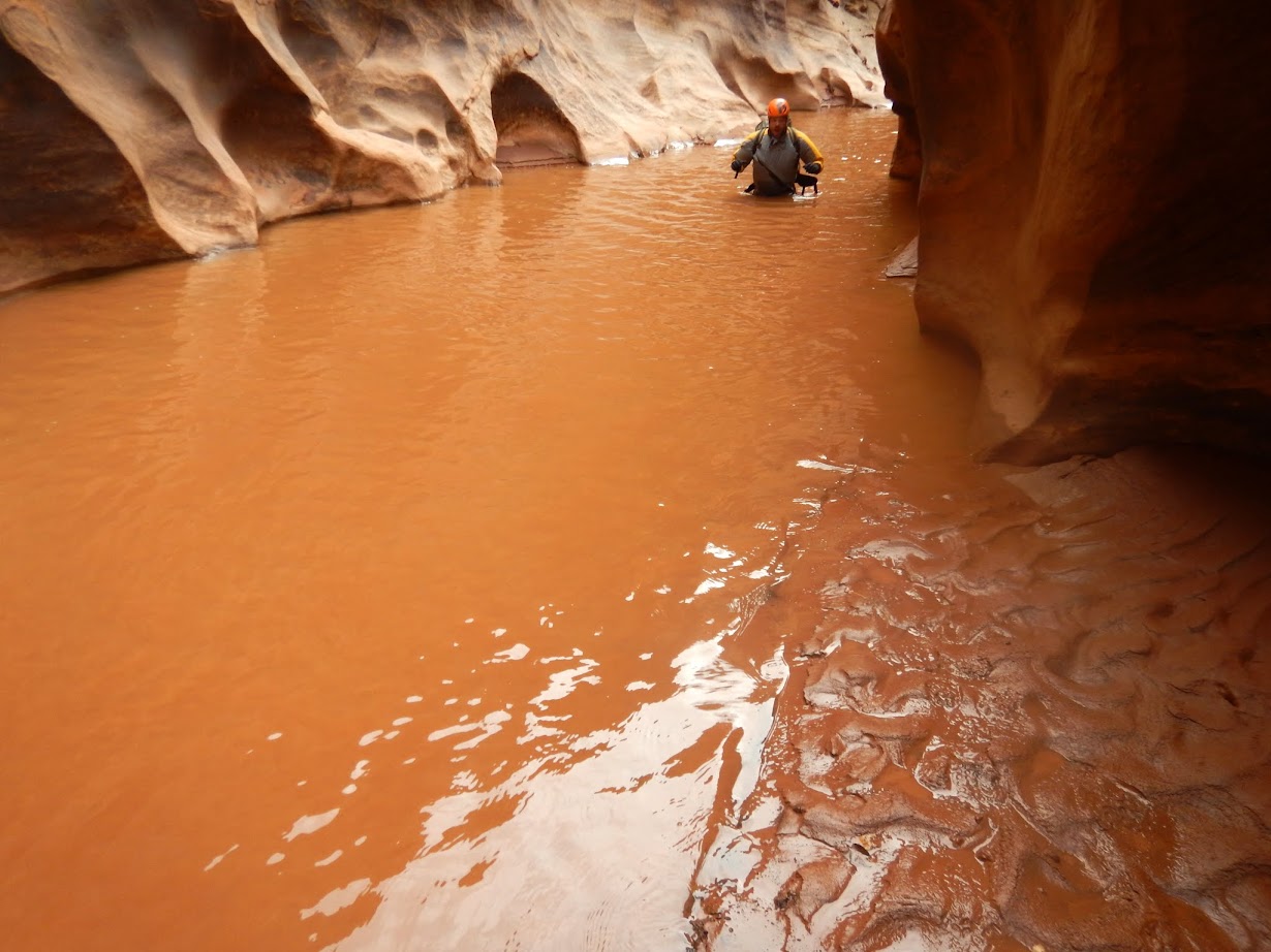 Happy New Year....January One 2017, was the 14th installment of the New Years Black Hole descent, in the 15 years of FreezeFest. Over the years, it has been in the 50 degree range a pair times, the 40's half a dozen times, below freezing about four times, including 6 degrees one morning, warming to maybe 20. There has been log jams 3 times, very snowy twice, flowing 3cfs once and icy to some degree almost always, sometimes creating great challenge. We treated one person for mild hypothermia and to my knowledge have not had any other reported injury of any kind. Our numbers were 6, 7, 4, 8, 12, 16 the first 6 years and has been in the 20's every year since, ranging from 22-28 brave souls. We had 24 folks this year, in party cloudy skies, with temps in the low 40's and less ice than normal. A bit scoured this year too, so a few more swims than normal.