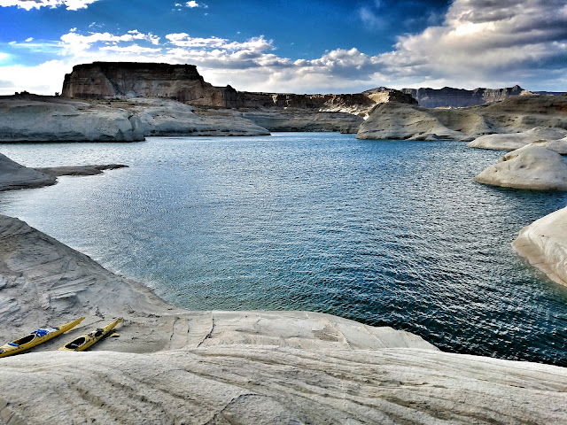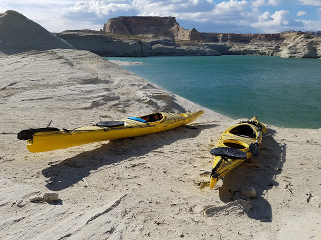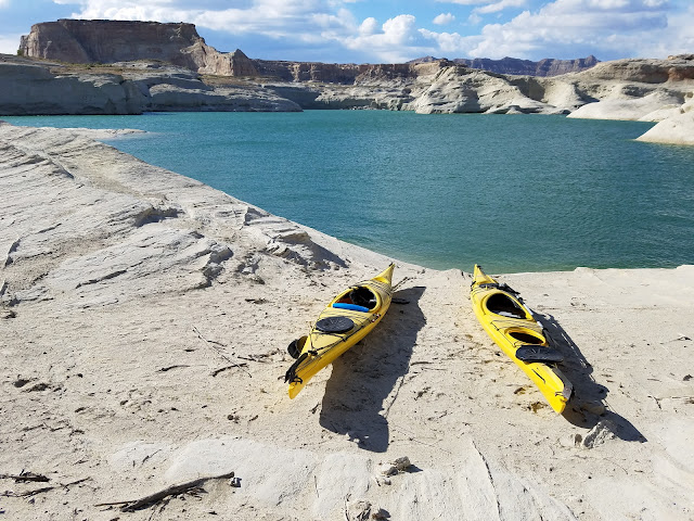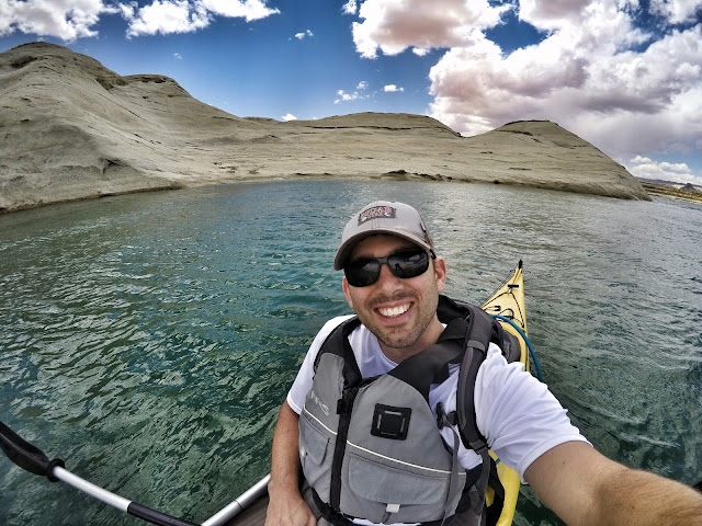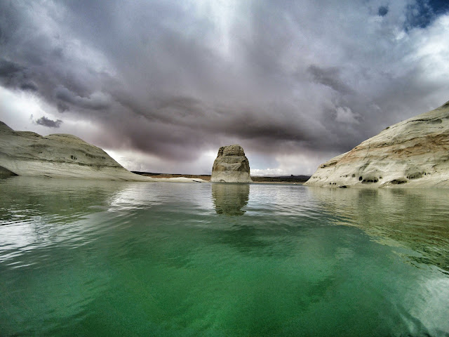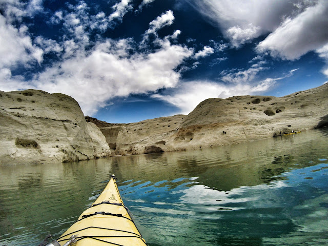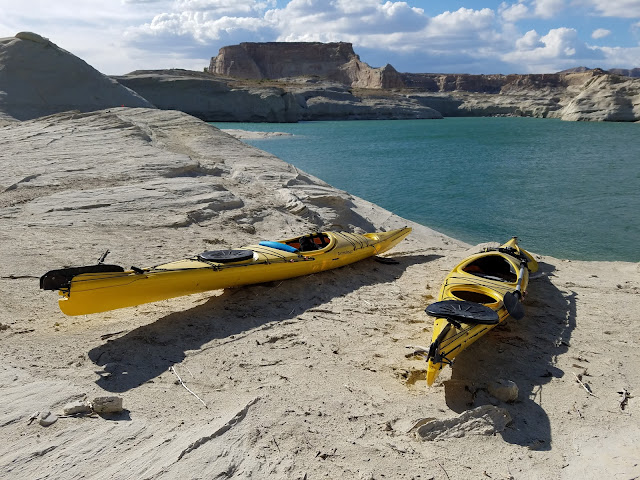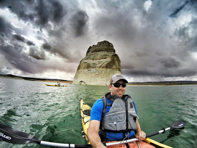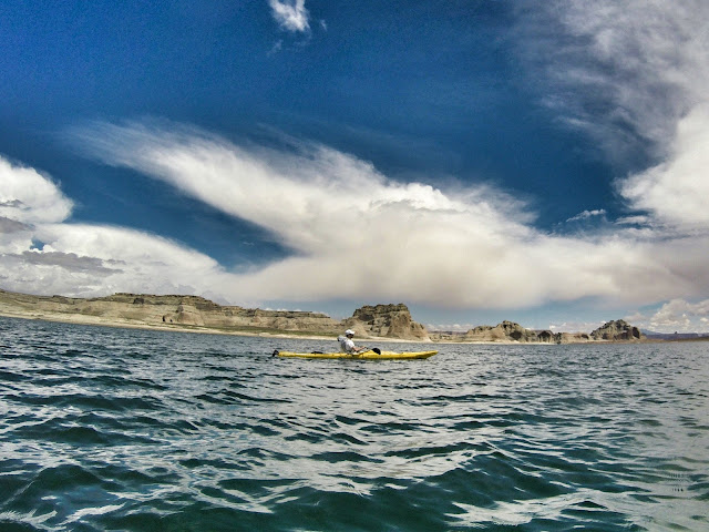 The rest of the trip was a blur! We picked up our Kayaks in Page and were on the water by 9am. A storm was moving in and the wind was gusting around 25 MPH. It was a bit crazy crossing the lake near Lone Rock, but we managed to make it without capsizing. Once we crossed the main channel and entered into Lone Rock canyon, things got much better. The wind was still blowing pretty good, but it wasn't as direct.