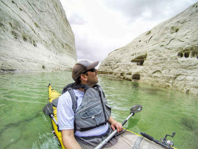 When I think about my time spent on Lake Powell, I am filled with so many emotions. My kayaking trips on this special lake ignite strong feelings of adventure, challenge, serenity, and exhilaration! There are moments when I am concerned and fighting to stay upright in a kayak. A few moments later I am chilling and relaxing and overcome with feelings of beauty and gratitude. Soon after I am taken with the rush of catching a fish, and then it is back to being overwhelmed with the grandeur and allure of my surroundings.