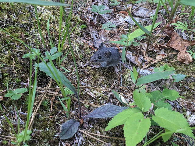 I stirred up this mouse from under some leaves, scared us both, he ran out and then immediately froze