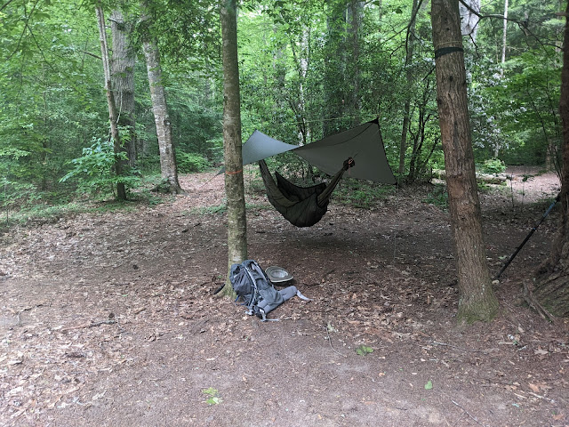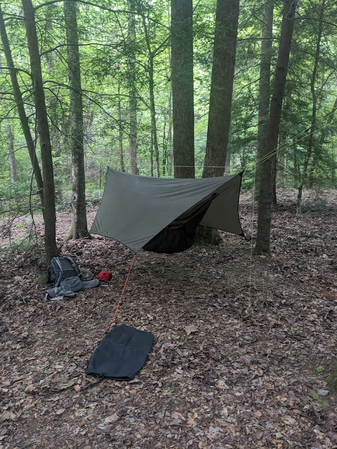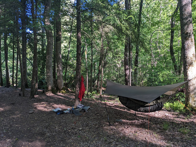 I got to the campsite and there were three guys setting up. I found a place off to the side and then relaxed near the fire ring. One of the guys was ready for a fire (saw, nice knife for batoning, firestarter). They seemed a little suspicious of me until I volunteered to take a turn sawing logs. We ended up chatting for a couple of hours and they were happy to share their party. They all worked together in Alabama and had been doing an annual trip to the park for the last couple of years. As it started getting dark a mom and dad and a young teenager rolled in, after setting up camp they joined us around the fire for a bit. Ended up being an entertaining night.