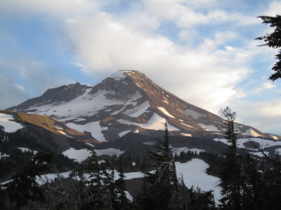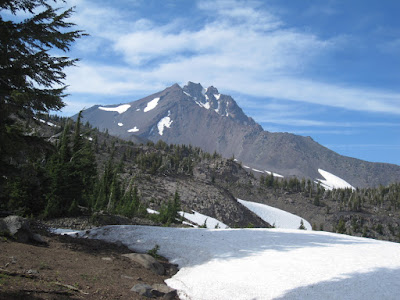 So with gas in pack we hiked through three and half miles of burnt to a crisp forest before we finally got some shade. A big fire burned through here just a few years ago, and while it made for slightly better views of the Sisters Peaks on the way, it was pretty sad to see. But once we got across Squaw Creek, we were in heaven: lush forest, spectacular views, and a continually graded trail that never really got steep, even though it climbed 1700 feet from the trailhead to Camp Lake in nearly seven miles.
