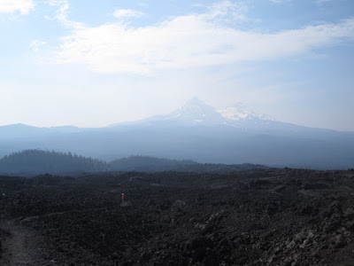 That didn’t work. We found a car camping site at Scott Lake that worked perfectly for us. There is no piped water there, so the 21 campsites rarely fill up. But the smoke was everywhere, and there seemed to be little point to climbing up on top of mountains if the view was all smoke. That’s takes care of the FIRE. We decided that instead of doing a backpacking trip into the smoke, we’d try to limit our lung damage with a day hike across the lava at the pass to Little Belknap Crater.