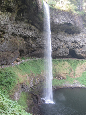 What a treat. A volcanic canyon filled with waterfalls that have eroded the softer rock behind the falls, so that the trails led us through seven waterfalls, three of which we could walk behind. A lovely way to wrap up our hiking in Oregon.