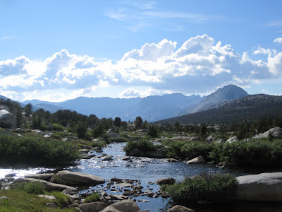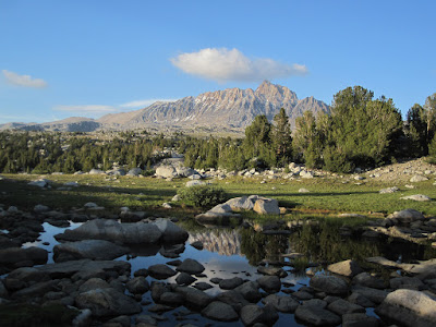 On our way out, we met three intrepid guys who planned on hiking over Alpine Col and climbing a few peaks before hiking out over Lamarck Col.