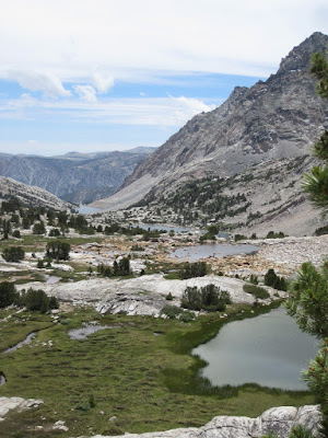 Once above Paiute Lake, the views were even better. And when we got to the pass, the whole Western slope came into view—including just a peek at the top of Mt. Humphreys. Later on, the whole mountain came to dominate the landscape. That's it's above.