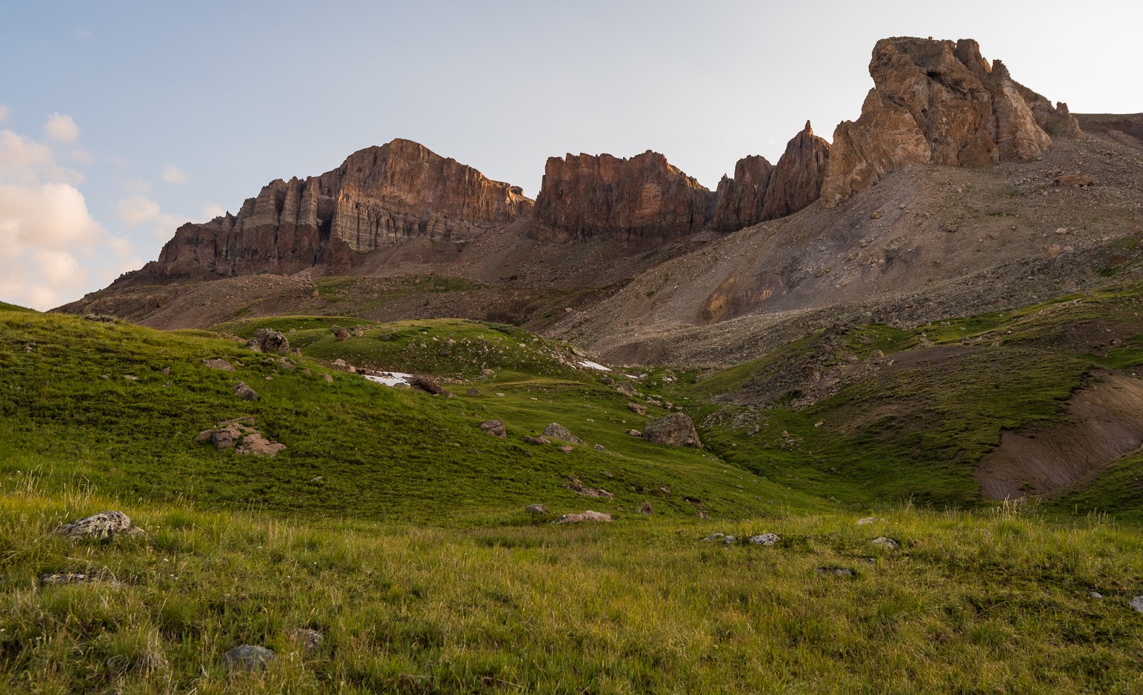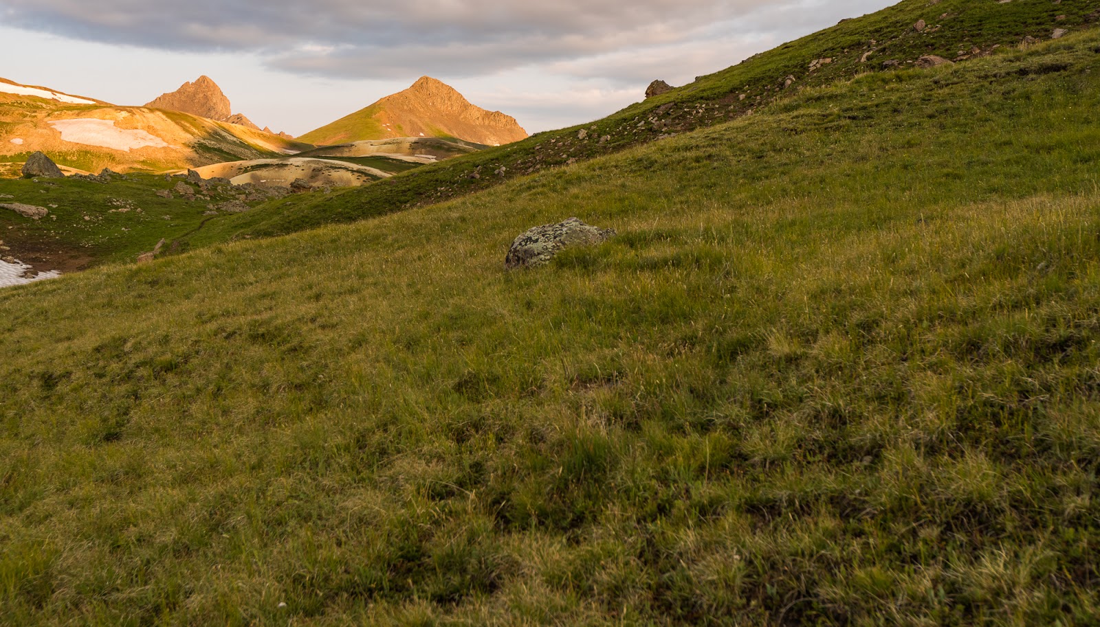 The positioning of our camp at the high pass a little over 12,400 feet up meant we could drop almost straight down Matterhorn Peak's slopes into our camp, with only a slight elevation gain from the pass up to our tents. We made a quick descent down the scrambling portion and grassy sections of the peak and made it back to camp in short order. Having successfully summited both Wetterhorn and Matterhorn Peaks, we'd accomplished our agenda for the day, so we spent the rest of the day relaxing, eating, and heading to bed a bit earlier for an early departure the following day of the San Juan Range highpoint, Uncompahgre Peak.
