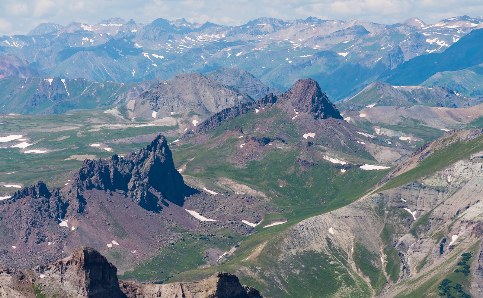 Views of Matterhorn (far left) and Uncompahgre (just left of center)Peaks from somewhere along the way as we descended Wetterhorn Peak.