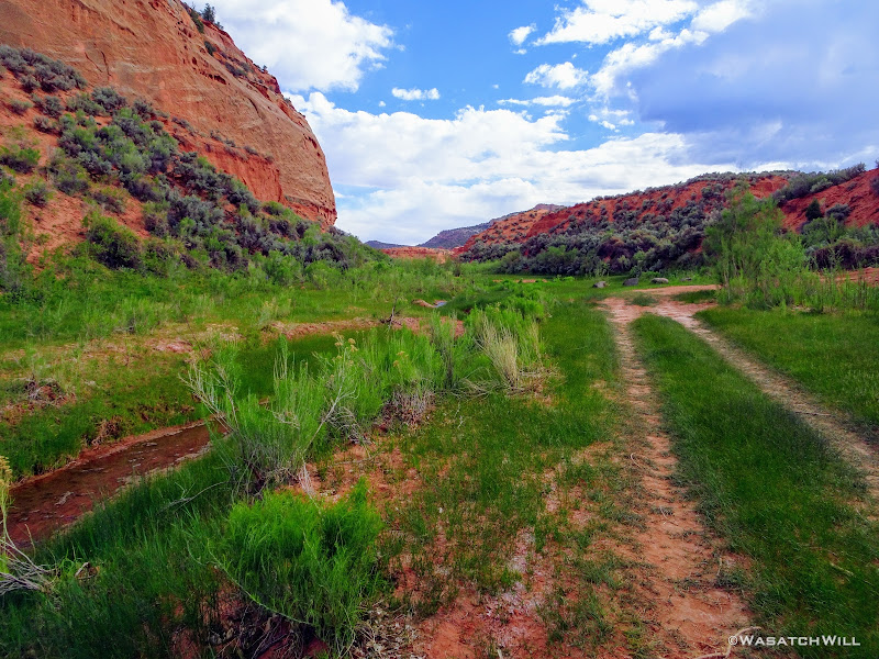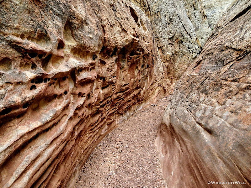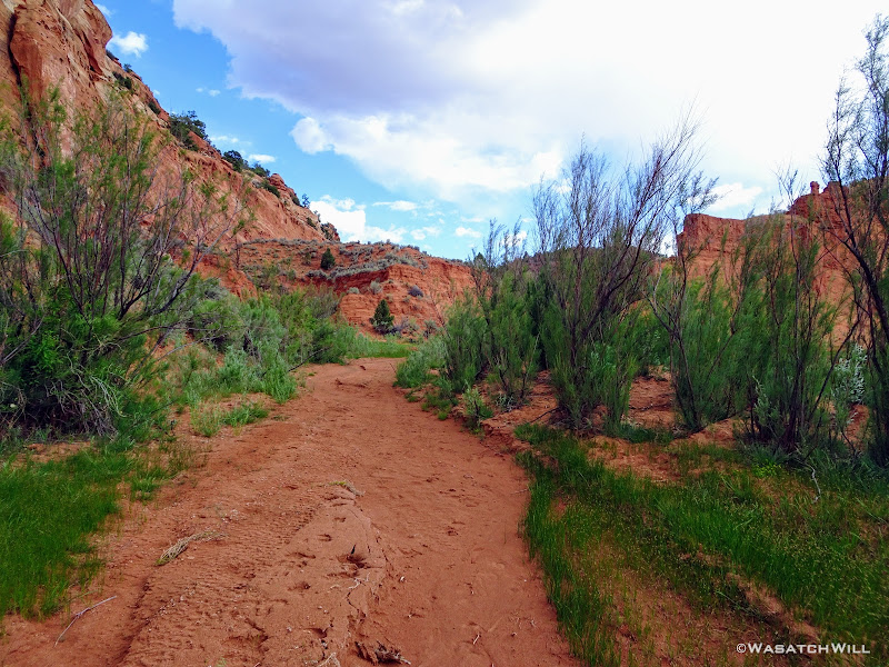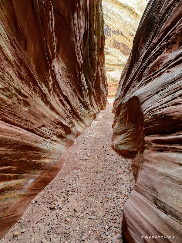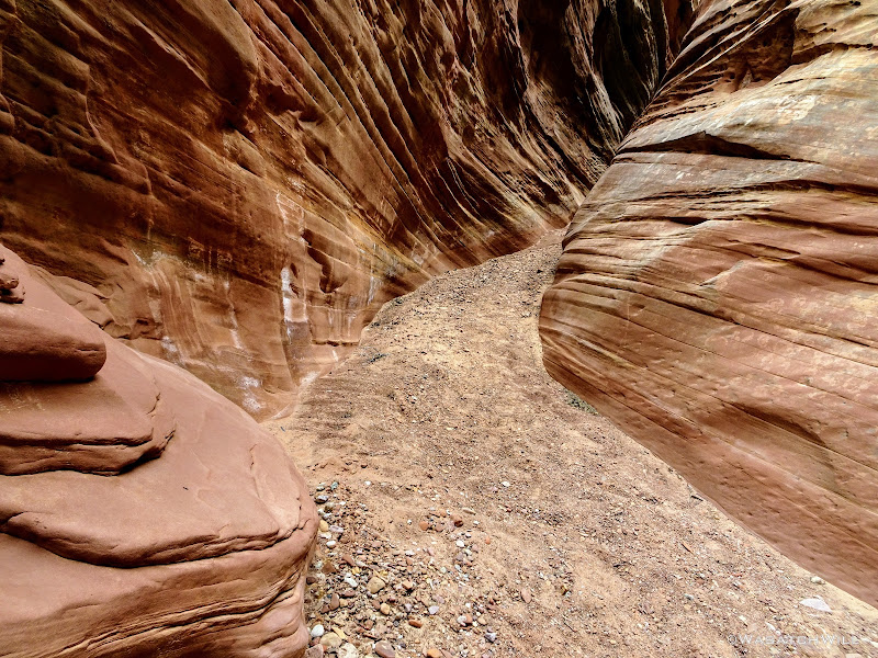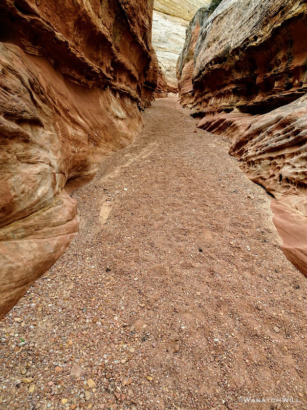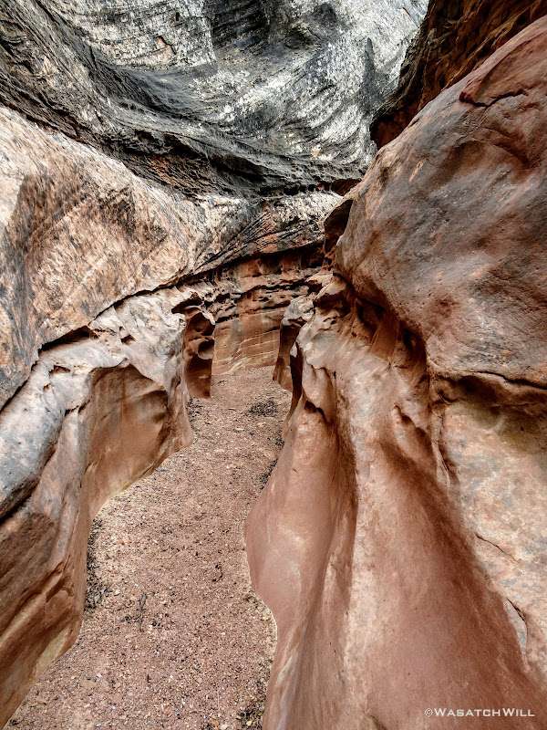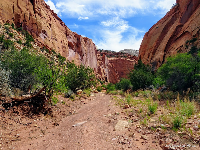 Notwithstanding the clouds behind me which I felt I was now racing, I looked back ahead down the gulch. This gorge through the Waterpocket Fold was about to get awesome! The race was on.