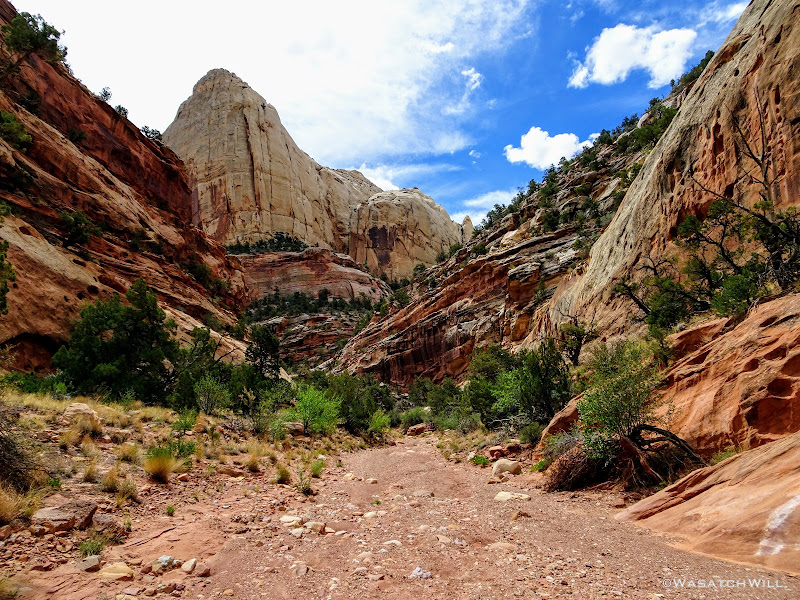 I started out by having my wife drop me off at the Pleasant Creek trailhead in Capitol Reef National Park early in the afternoon after securing a backcountry camping permit from the Capitol Reef Visitor Center along the way, with plans to actually camp in upper Sheets Gulch. She would then return to her parents' place with our kids in Torrey. It turned out the permit wasn't entirely necessary as will be explained further on.