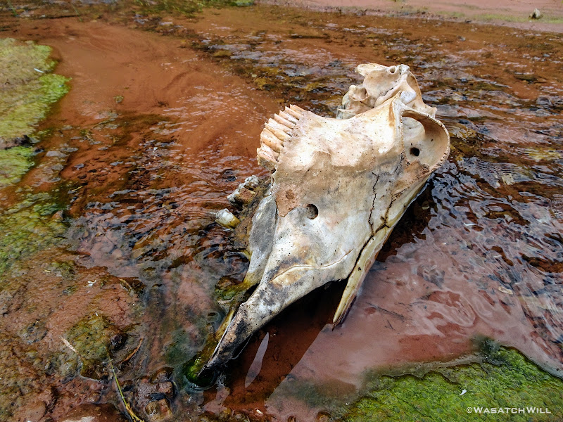 Continuing on along the creek, I almost stumbled over a skull. Whether it belonged it a cow, a horse, or something else, I knew not. Still, it was a stark reminder of the circle of life.