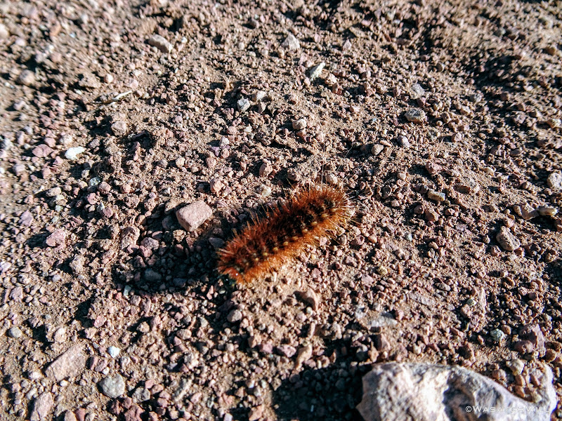 Besides some regular birds and a rabbit that ran across the road in front of me, the only other wildlife I'd see was a fuzzy caterpillar inching its way along the side of the road.