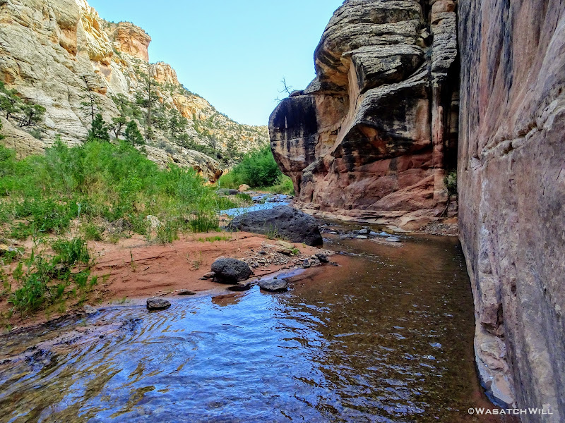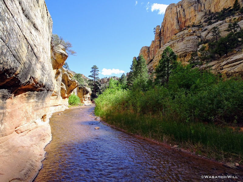 Once again, I was blown away at the beauty of the canyon walls rising up more dramatically as I progressed up stream. Ironically, the more climatic part of this section of the creek doesn't begin until just after leaving the park boundary.