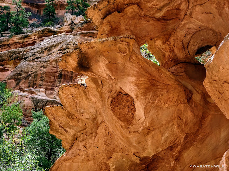 I had hoped to get up close to its arches, but the topography ended up being much more rugged than the maps had made it appear. It never ceases to amaze how much variance there can be within 40 feet of elevation out in these landscapes. I was still miles away from where I wanted to camp and time was speeding by. I did not have the time I wanted to try and find a way up the Salmon to get a closer view of the arches, so a close-up with my camera had to do.